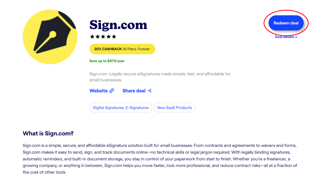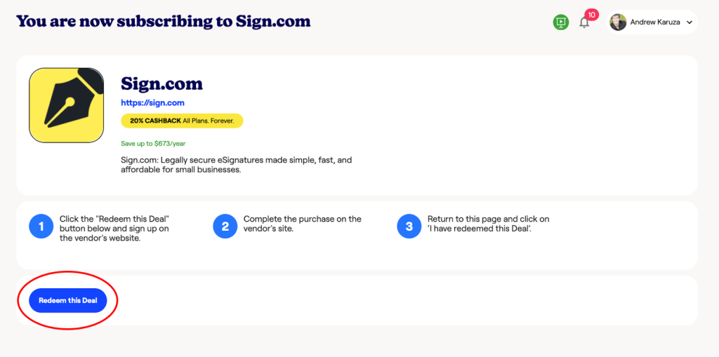 Once you’re signed into NachoNacho, follow the instructions on the redemption details page. In most cases, this involves clicking the “Redeem this deal” button, which will take you to the vendor’s website via a special tracking link. After completing your purchase, you’ll automatically receive cashback in the “Cashback” tab in the left-hand menu of your NachoNacho dashboard within 30–45 days, once the vendor pays out. Be sure to use the link provided on this page so the purchase tracks correctly and your cashback is credited. In some cases, you may instead see credits available or an immediate discount applied.