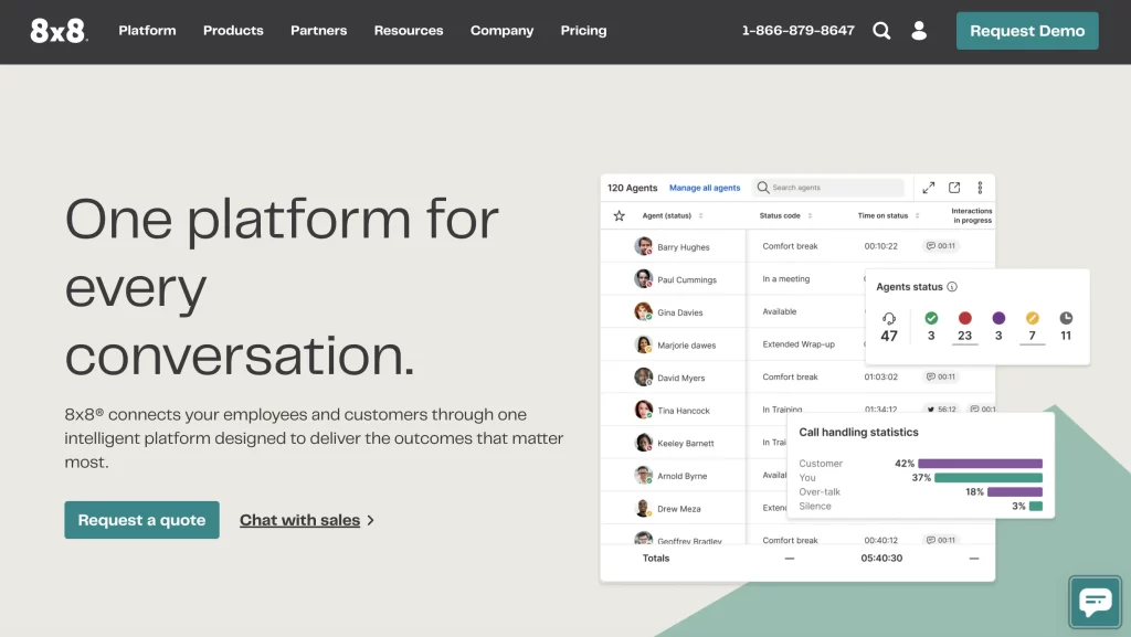 8×8 goes far beyond a traditional VoIP phone system. It’s a full-fledged Unified Communications as a Service (UCaaS) and Contact Center as a Service (CCaaS) platform designed to streamline every interaction inside and outside your business.